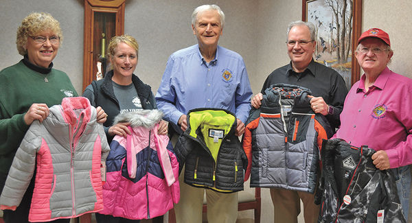 Recent chilly weather made this sampling of winter coats provided by the St. Patrick Knights of Columbus to the South Tama Adopt-A-Family Program even more impressive on Friday, Jan. 26. From left are Adopt-A-Family Committee members Micki Ferris and Lesa Haughey and St. Patrick Knights of ...
