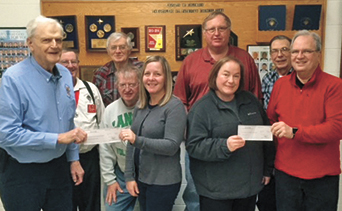 The Knights of Columbus Council 7504 of St Patrick's parish Tama-Toledo donated $1480.00 each to the local Central Iowa Residential Services Inc. agency and Special Olympics. The proceeds came from their Tootsie Roll drive this year. Pictured are right to left- Grand Knight-George Oetker, ...